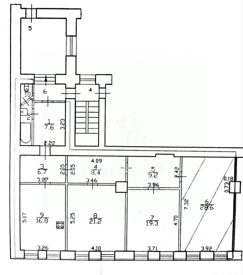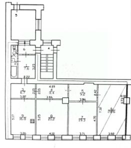 Расположена на 2 этаже, общая площадь 122 м², высота потолков 3,12 м.;