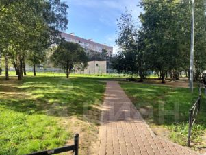 Во дворе все в зелени. Дорожки вымощены плиткой. Есть уличные тренажеры и даже площадка для выгула собак.