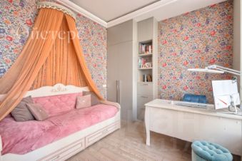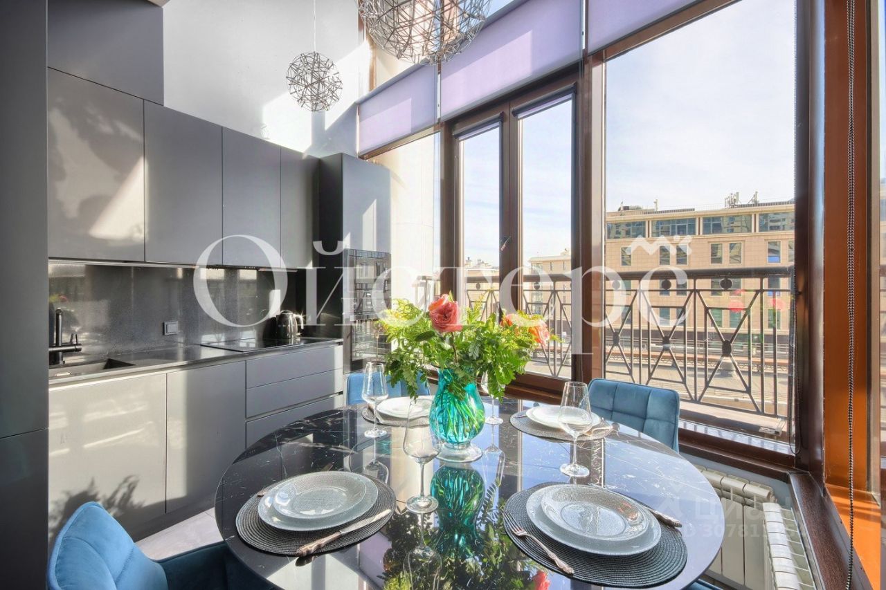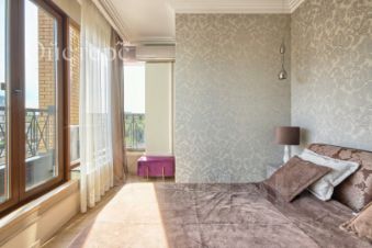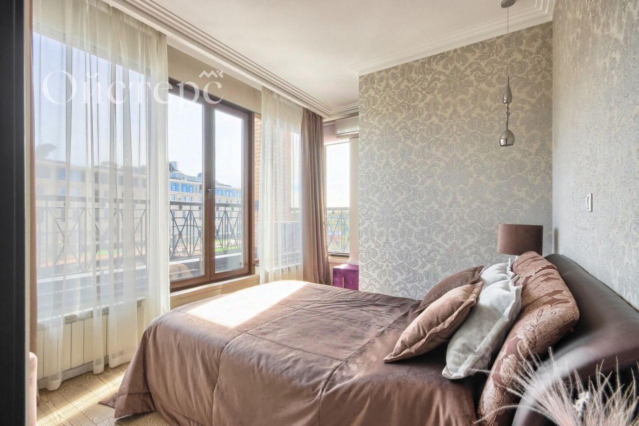 Квартира оснащена встроенной мебелью и бытовой техникой. Каждая комната наполнена светом за счет панорамного остекления, высота от пола до широких подоконников — 50 см.