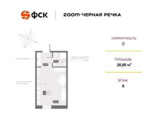 Цена со специальной скидкой в прямой продаже от застройщика — только в этом месяце. Апартамент-студия в комплексе класса бизнес-лайт Zoom Чёрная Речка на 8-м этаже. Общая площадь 26,85. Предчистовая отделка.