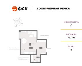 Цена со специальной скидкой в прямой продаже от застройщика — только в этом месяце. Апартамент-студия в комплексе класса бизнес-лайт Zoom Чёрная Речка на 8-м этаже. Общая площадь 31,23. Предчистовая отделка.