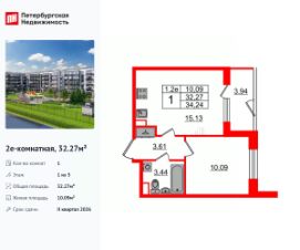 Удобная, классическая, функциональная европланировка, большая кухня-гостиная 15.13 м², вместительная прихожая 3.61 м². Общая площадь квартиры - 32.27 м², жилая 10.09 м², высота потолка 2.77 м.