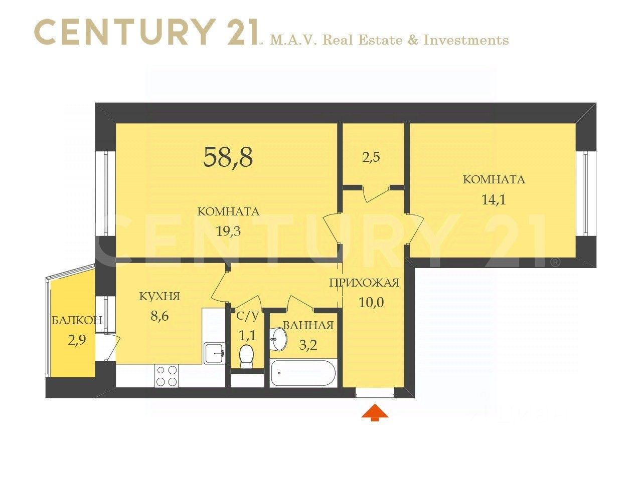 58,8 м²