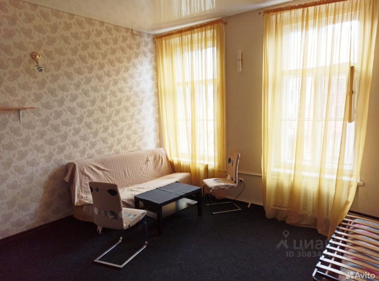 В комнате был произведен косметический ремонт , стены выровнены гипсокартоном, потолок подвесной, новая металлическая дверь. Два больших окна с видом на реку.