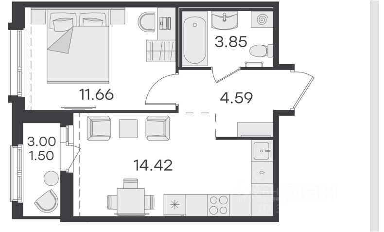 Продаётся 1-к квартира на 5-м этаже в строящемся проекте комфорт-класса GloraX Парголово с отделкой Комфорт. Общая площадь составляет 36.02 кв. м, из которых 11.66 кв. м отведено под жилую и 14.42 кв. м под кухонную зону. Корпус 1, секция 1, номер квартиры - 61. Окна на улицу (на благоустроенную территорию комплекса без домов) на юго-запад. Сдача 1 кв 2026, передача ключей застройщиком 2 кв 2026.