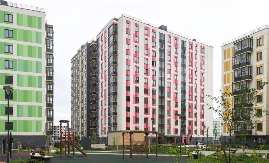 —во дворах много ландшафтных зелёных островков, современных безопасных детских и спортивных площадок