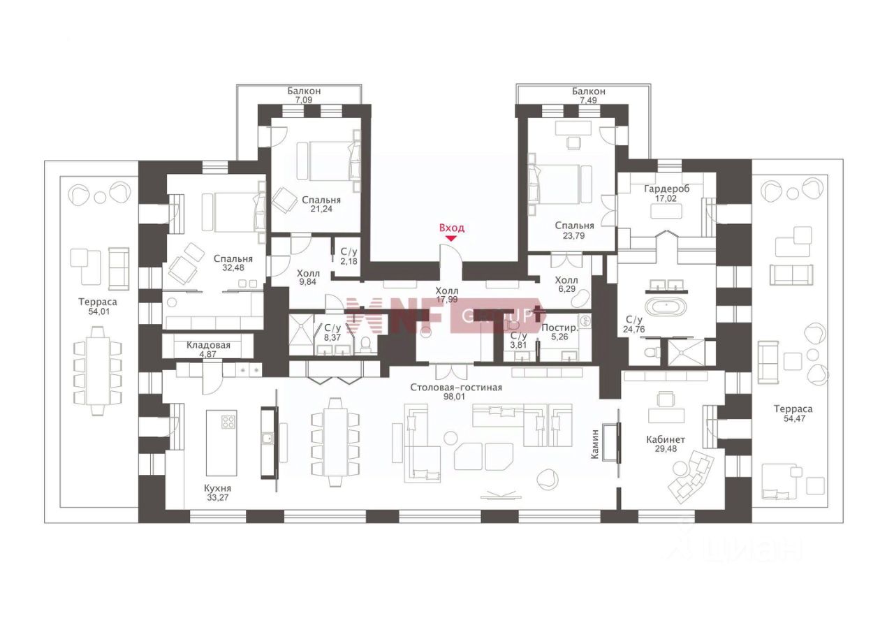 341 кв м внутренней площади квартиры. Мы предлагаем рассмотреть новую планировку от Galerie 46.