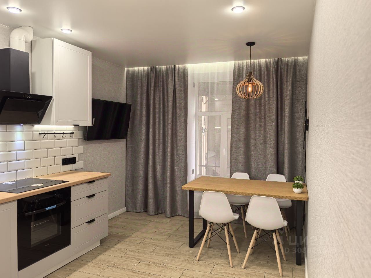 Поклеены дорогие обои, на полу износостойкий ламинат 33 класса, натяжные потолки.