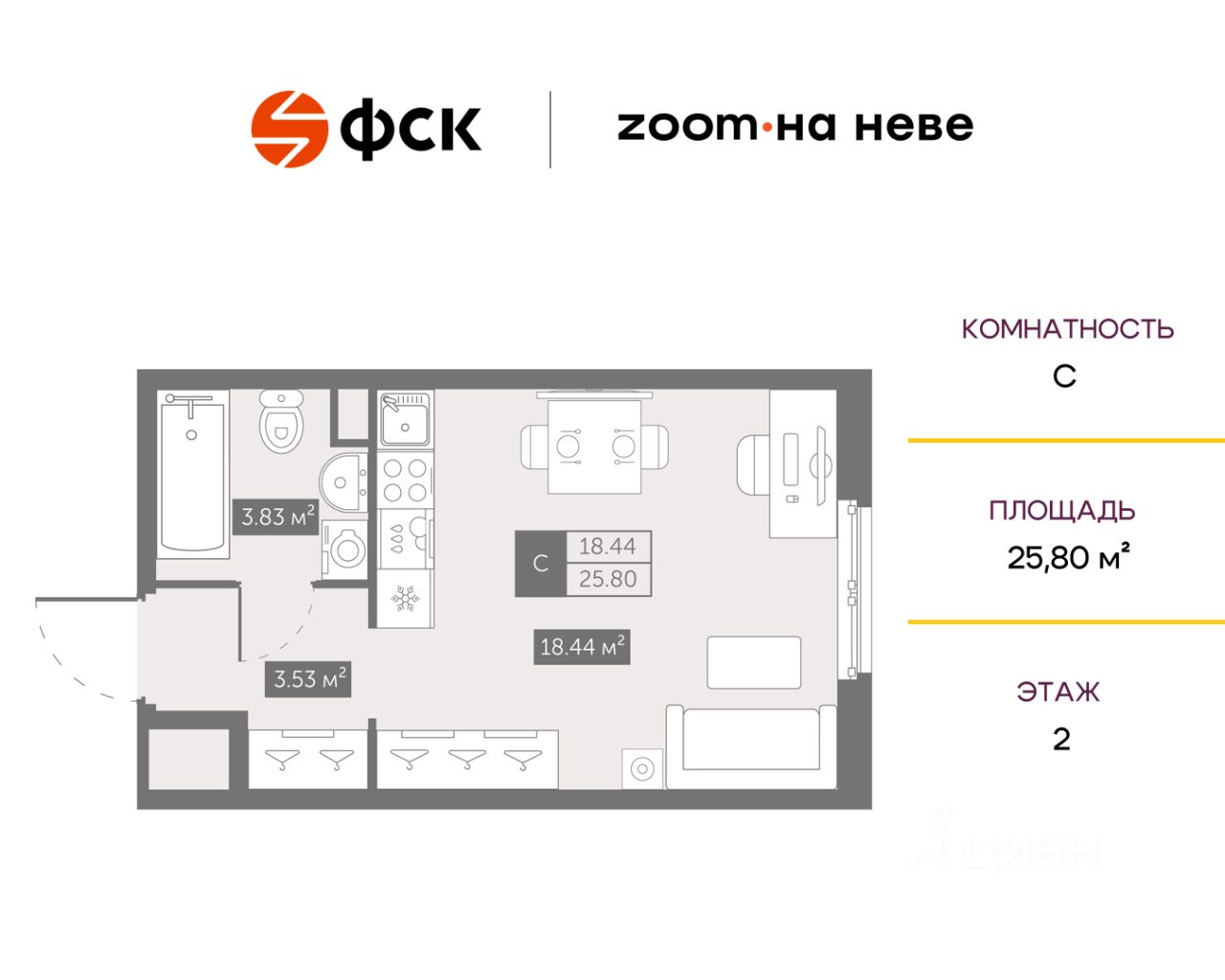 Цена со скидкой до 30% в прямой продаже от застройщика — только в этом месяце. При покупке апартаментов - паркинг за полцены. На все апартаменты действует беспроцентная рассрочка. Купите на распродаже! Покупка недвижимости в Zoom на Неве сейчас со скидкой до 30% позволит через 2 года получить доход до 6 300 000 руб. Роскошные виды на Неву. Апартамент-студия в комплексе класса бизнес-лайт Zoom на Неве на 2-м этаже. Общая площадь 25,8. Без отделки.