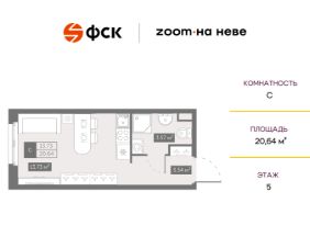 Цена со скидкой до 30% в прямой продаже от застройщика — только в этом месяце. При покупке апартаментов - паркинг за полцены. На все апартаменты действует беспроцентная рассрочка. Купите на распродаже! Покупка недвижимости в Zoom на Неве сейчас со скидкой до 30% позволит через 2 года получить доход до 6 300 000 руб. Роскошные виды на Неву. Апартамент-студия в комплексе класса бизнес-лайт Zoom на Неве на 5-м этаже. Общая площадь 20,64. Без отделки.