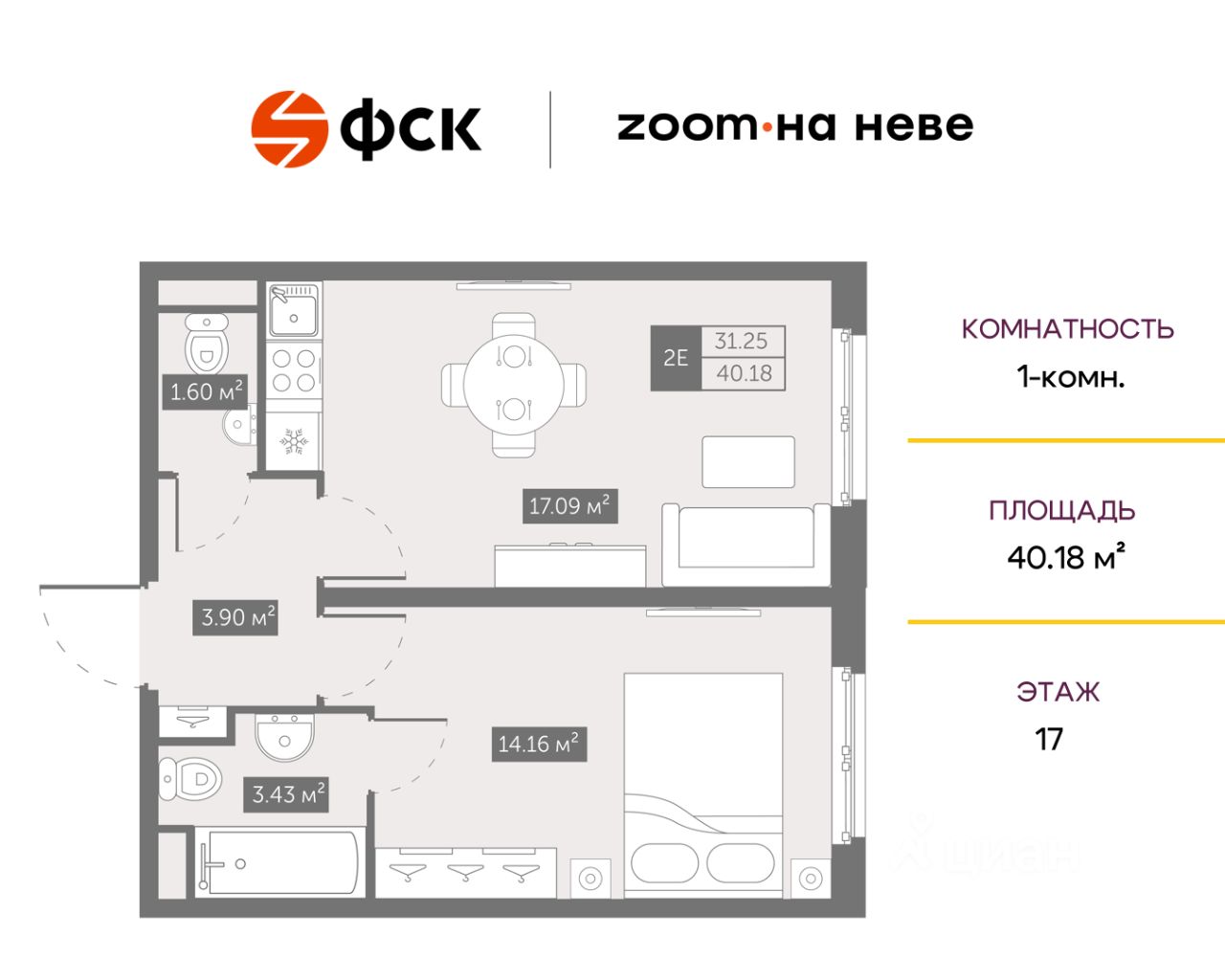 Цена со скидкой до 30% в прямой продаже от застройщика — только в этом месяце. При покупке апартаментов - паркинг за полцены. На все апартаменты действует беспроцентная рассрочка. Купите на распродаже! Покупка недвижимости в Zoom на Неве сейчас со скидкой до 30% позволит через 2 года получить доход до 6 300 000 руб. Роскошные виды на Неву. 1-к апартамент в комплексе класса бизнес-лайт Zoom на Неве на 17-м этаже. Общая площадь 40,18. Без отделки.