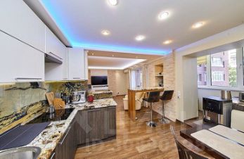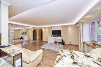 Квартира оформлена в дизайнерском стиле. Просторная кухня оснащена всей необходимой техникой. В квартире есть два совмещенных санузла, 3 гардеробные и кладовка, окна выходят на две стороны.