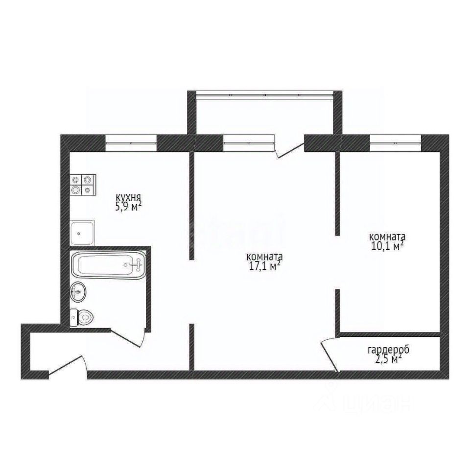 Общая площадь составляет 43.5 кв. м., что обеспечит вам комфорт и пространство для жизни. Просторные комнаты 17 и 10 кв. м. позволят вам создать идеальное место для отдыха и работы, а кухня площадью 5,9 кв. м. станет удобным уголком для кулинарных экспериментов.