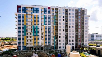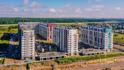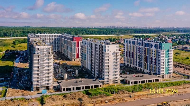 Проект Полис Новоселье — это комплексная застройка монолитными домами высотой в 12 этажей. Вентилируемые цветные фасады с крупной графикой визуально разделены на большие блоки, что позволяет всему комплексу быть заметным с дальнего