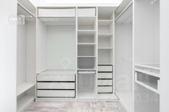 Мастер спальня с большим гардеробом и собственной ванной комнатой.