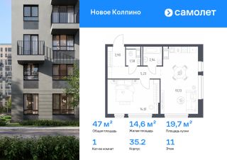 Предлагается 1-комнатная квартира комфорт-класса 46,99 кв.м в корпусе 35.2 на 11 этаже, в ЖК "Новое Колпино"