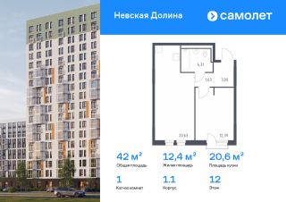 Предлагается 1-комнатная квартира комфорт-класса 41,96 кв.м в корпусе 1.1 на 12 этаже, в ЖК "Невская Долина"