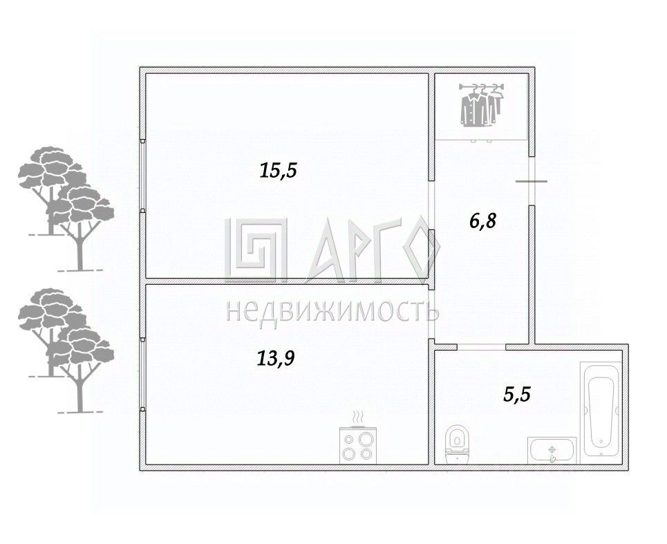 УДОБНАЯ ПЛАНИРОВКА - кухня и комната равноценны по метражу, а большая гардеробная в прихожей делает жизнь ещё комфортнее.