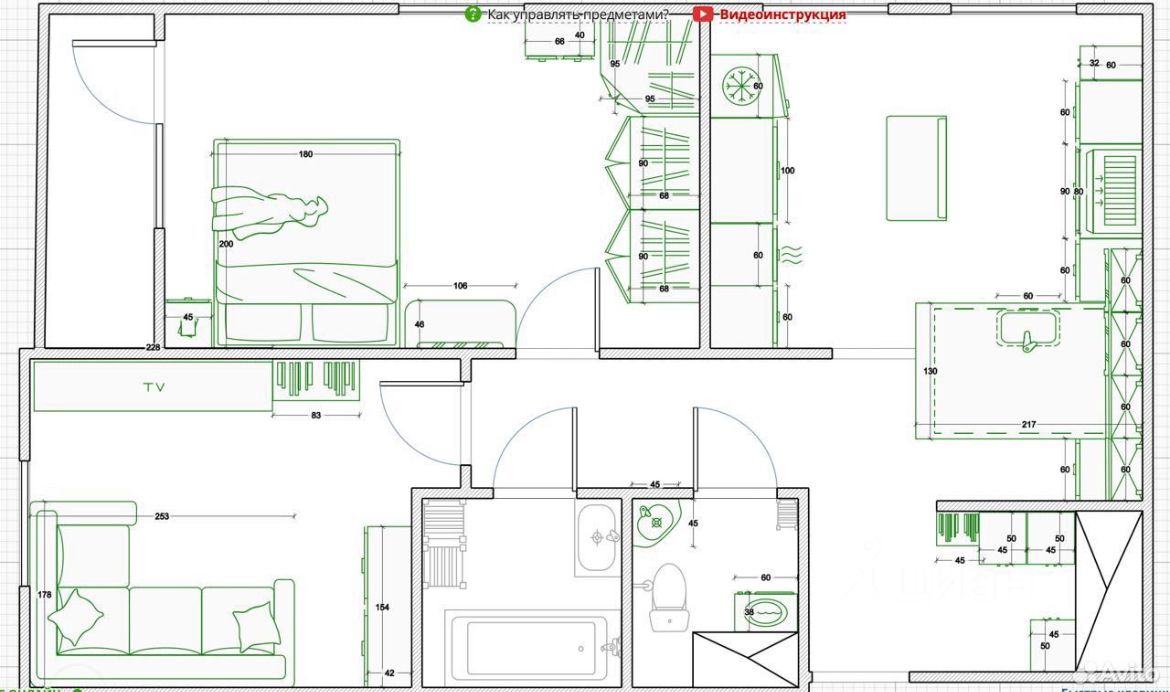 Стены между комнатами - гипсокартон, при желании, можно все снести и сделать перепланировку.