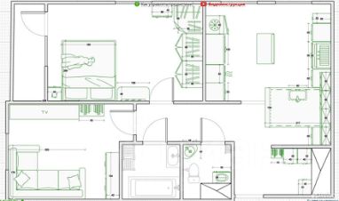 Про саму квартиру: сделан евро ремонт, санузлы, стены, обои. В санузлах ремонт дизайнерский, с модными нишами. Не успели пока сделать только потолки.