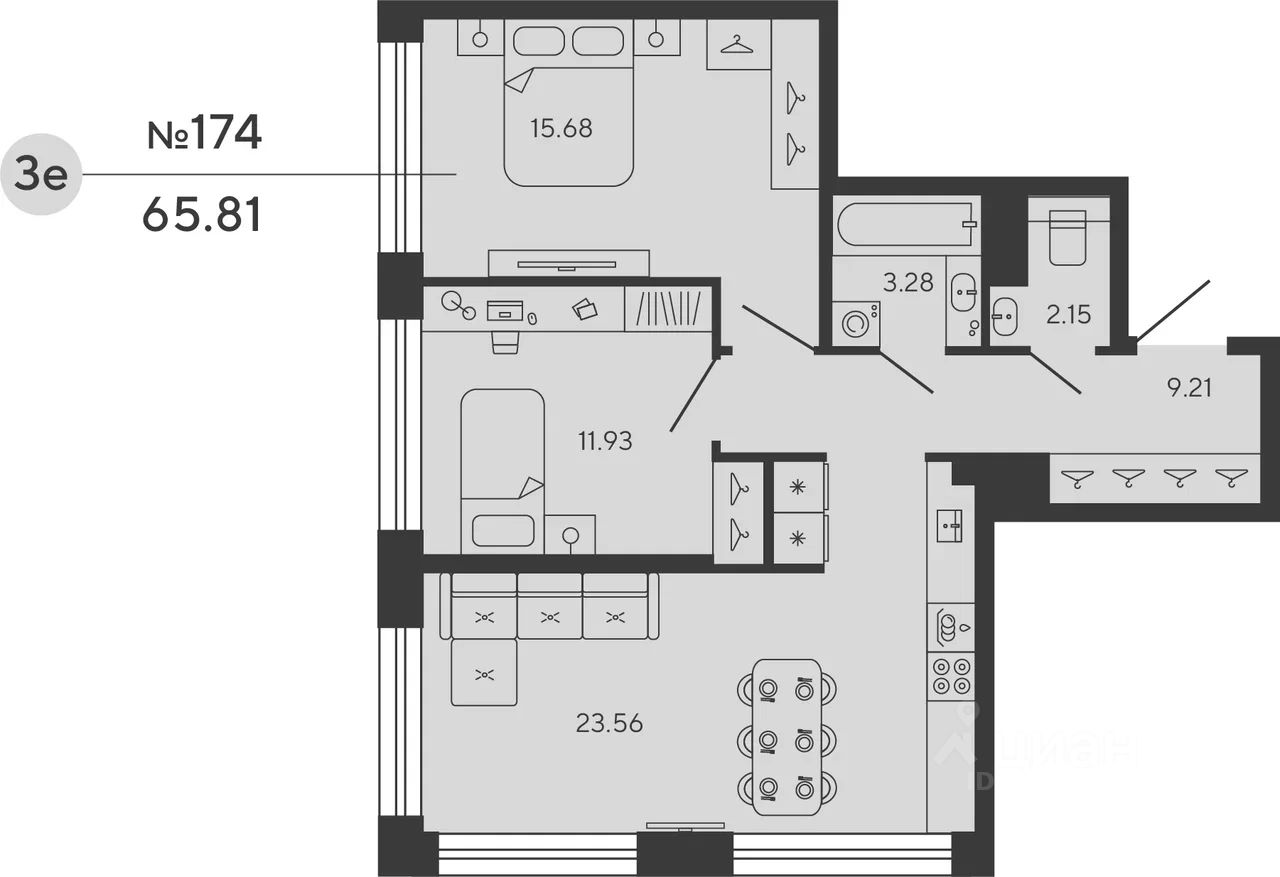 Квартира 174 в корпусе Carbon проекта бизнес-класса "BASHNI ELEMENT"