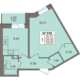 Продаётся 1-комнатная квартира в строящемся доме (Корпус 1), срок сдачи: IV-кв. 2025, общей площадью 39.91 кв.м., на 3 этаже. Новый жилой комплекс "Капральский" от застройщика "СЗ Решение" расположен по адресу: Ленинградская область, Всеволожский район, деревня Новое Девяткино, Лесная улица