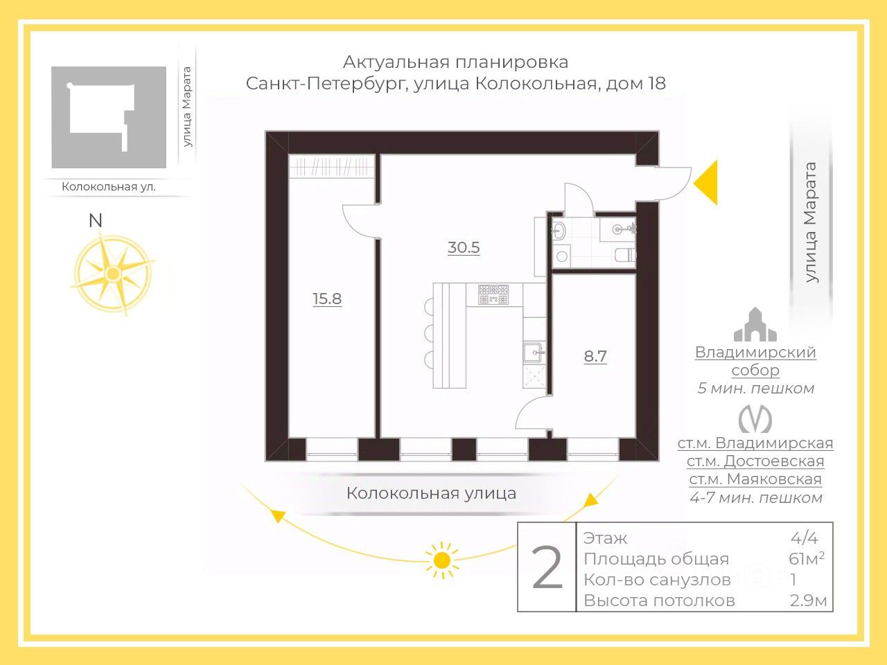 Арт. 78333601 Вашему вниманию предлагается просторная функциональная двукомнатная квартира с ремонтом в историческом центре Санкт-Петербурга.
