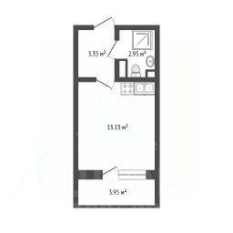 На одиннадцатом этаже двенадцатиэтажного дома располагается светлая квартира-студия общей площадью 19,43 кв. м. Жилая площадь составляет 13,13 кв. м., высота потолков — 2,7 метра. Квартира без отделки, что позволит новому владельцу обустроить её по своему вкусу и предпочтениям.