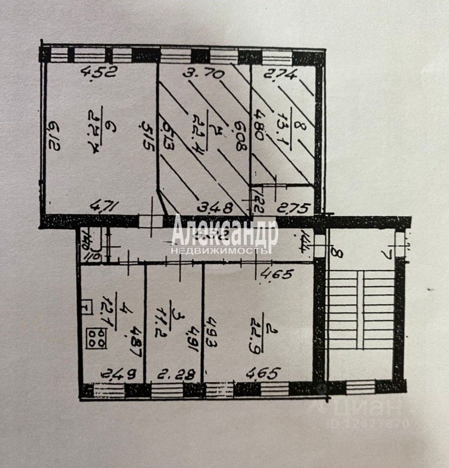 1697936 Вашему вниманию представляем две комнаты (22,4 м2 и 13,1м2) в 5 комнатной квартире общей площадью 126,9 м2,