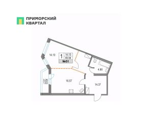 Продается 1 - комнатная квартира общей площадью 49.94 кв.м., на 9 этаже в построенном и заселенном корпусе 42 (год сдачи: 2024 г.)