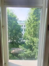 Квартира расположена на 3 этаже 3-этажного красивого и добротного кирпичного дома с железобетонными перекрытиями, именно эта часть дома достроена в 1950 году. Перед домом скверик, пять больших окон смотрят на него. В парадную можно зайти и с линии, и из просторного зеленого двора. Въезд в закрытый двор возможен с трех сторон: с 19-й и 20-й линии и с набережной, во дворе очень много мест для парковки. Парадная на 12 квартир, чистая, ухоженная, с удобной лестницей и большими площадками, коммунальных квартир нет.