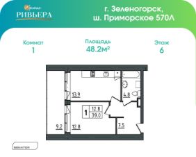 Продаются просторные апартаменты у самого берега Финского залива площадью 48,2 м2 в комплексе бизнес-класса "Морская Ривьера". Располагаются в единственном корпусе на 6 этаже из 12.