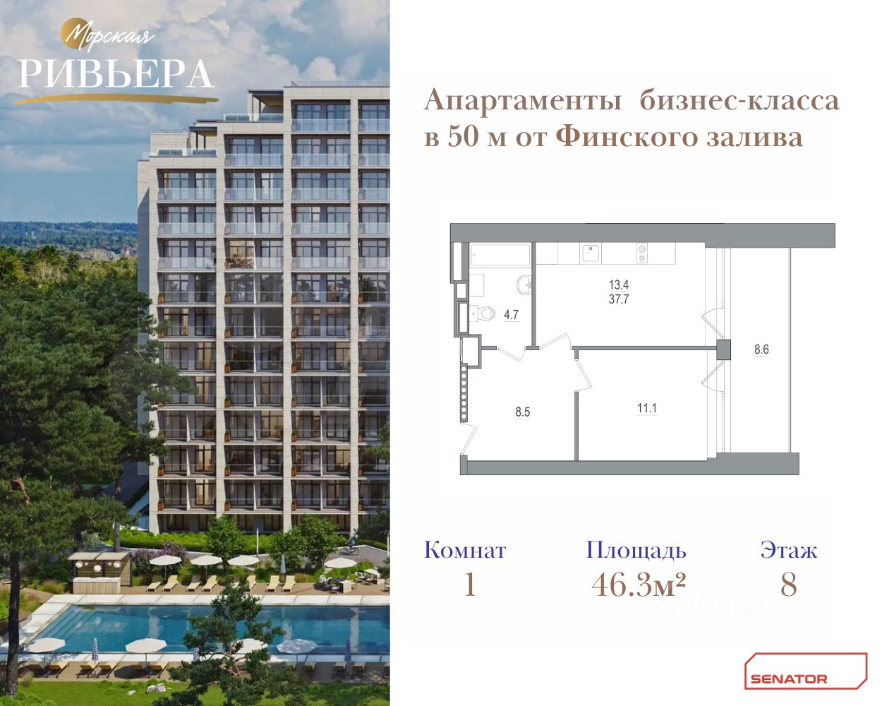 "Морская Ривьера" - уникальный комплекс в Курортном районе Санкт-Петербурга, г.Зеленогорск. Это респектабельный район с потрясающей экологией, ни одного производства по близости. Воздух здесь по-настоящему оздоравливает - он насыщен морем и соснами - создает атмосферу отдыха и восстановления. Прогулки вдоль залива в лучах заходящего солнца станут вашим личным ритуалом перезагрузки.