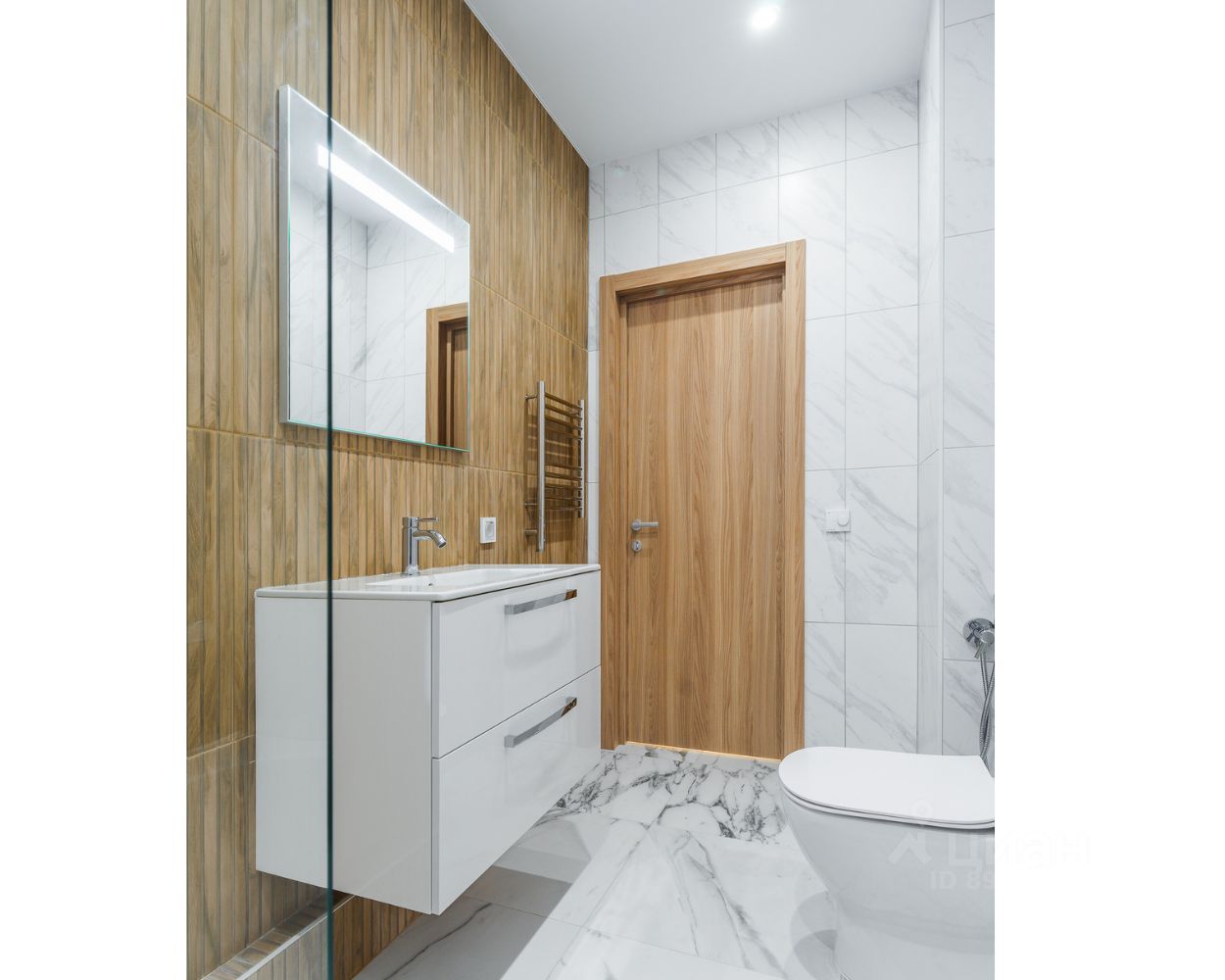 Студия 23 м² с отделкой под ключ и глубокой лоджией-аэрарией. Находится лот на 9 этаже, откуда открывается завораживающий вид на лес.