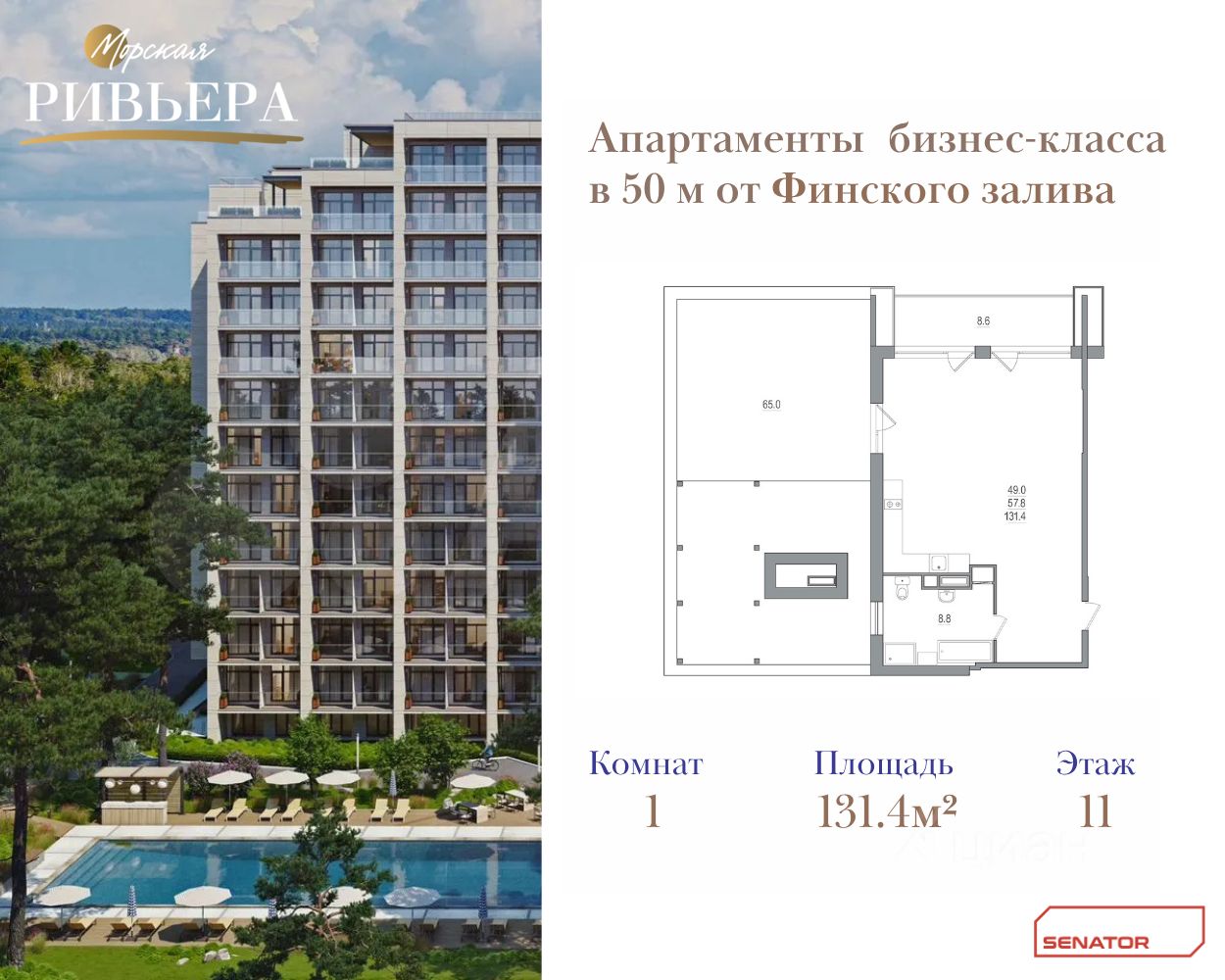 Продаются просторные 3-комнатные апартаменты у самого берега Финского залива площадью 131,4 м2 в комплексе бизнес-класса "Морская Ривьера". Располагаются в единственном корпусе на 11 этаже из 12.
