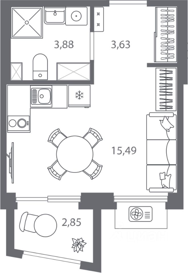 Продаётся студия в строящемся доме (Дом 2), срок сдачи: I-кв. 2026, общей площадью 23.86 кв.м., на 3 этаже. Жилой квартал Respect - современная респектабельность.