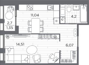 Продаётся 1-комнатная квартира в строящемся доме (Дом 6), срок сдачи: IV-кв. 2026, общей площадью 37.17 кв.м., на 11 этаже. Жилой квартал Respect - современная респектабельность.