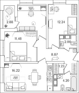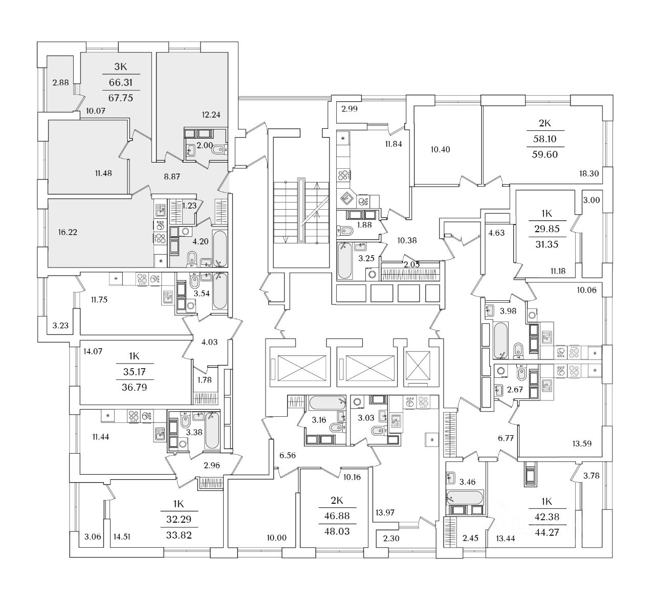 Квартира находится в 22 этажном доме, в Корпус 5 на 18 этаже. Общая площадь квартиры 67,75 кв.м.