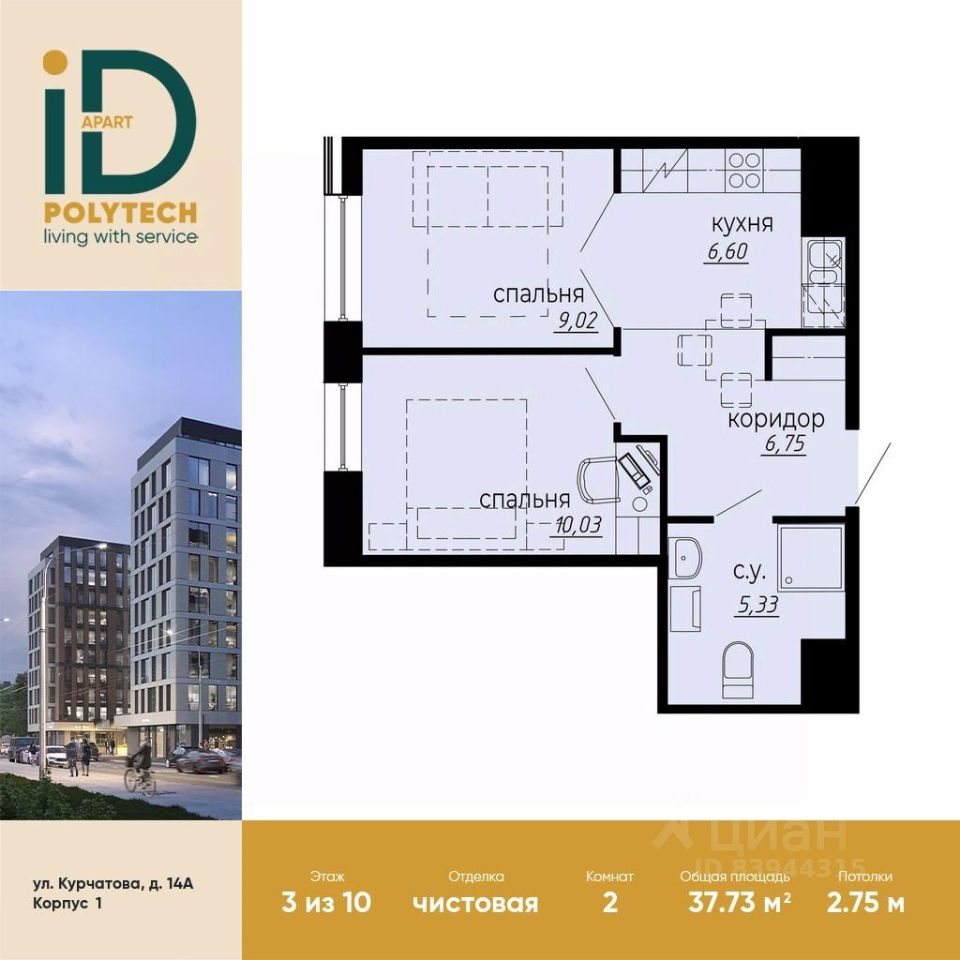 В продаже стильные апартаменты с готовой отделкой в эксклюзивном апарт-комплексе iD Polytech. Европланировка включает кухню-гостиную, две изолированные спальни, а также выделенные места для хранения. 10-этажный дом расположен в шаговой доступности от станции метро "Политехническая" и престижного научно-образовательного кластера Политехнического университета Петра Великого. Дорога до Петроградской стороны с ее ресторанами, барами и креативными пространствами, как и до исторического центра, займет не больше 20 минут. Удобные выезды на ЗСД и КАД позволят свободно и быстро доехать до крупнейших моллов, аэропорта и живописного пригорода - Пушкино, Петергофа, Кронштадт, Зеленогорск. iD Polytech - идеальный вариант как для постоянного проживания, так и для временного размещения и сдачи в аренду туристам. Завершение строительства запланировано на 2 квартал 2026 года.