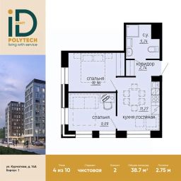 В продаже стильные апартаменты с готовой отделкой в эксклюзивном апарт-комплексе iD Polytech. Европланировка включает кухню-гостиную, две изолированные спальни, а также выделенные места для хранения. 10-этажный дом расположен в шаговой доступности от станции метро "Политехническая" и престижного научно-образовательного кластера Политехнического университета Петра Великого. Дорога до Петроградской стороны с ее ресторанами, барами и креативными пространствами, как и до исторического центра, займет не больше 20 минут. Удобные выезды на ЗСД и КАД позволят свободно и быстро доехать до крупнейших моллов, аэропорта и живописного пригорода - Пушкино, Петергофа, Кронштадт, Зеленогорск. iD Polytech - идеальный вариант как для постоянного проживания, так и для временного размещения и сдачи в аренду туристам. Завершение строительства запланировано на 2 квартал 2026 года.