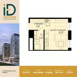 В продаже стильная эргономичная студия с готовой отделкой в эксклюзивном апарт-комплексе iD Polytech.