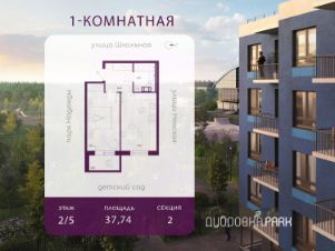 Продаётся 1- комнатная квартира площадью 37,74 кв.м. на 2 этаже 5-этажного дома в ЖК "Дубровка. Park". Номер квартиры 39.
