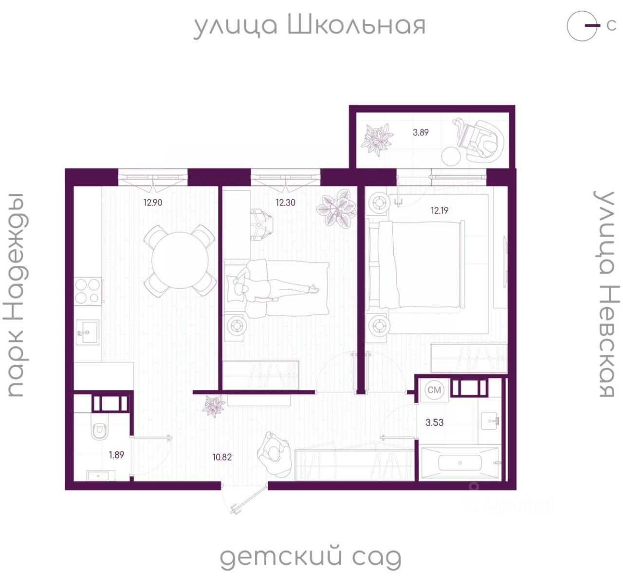 Продаётся 2- комнатная квартира площадью 54,80 кв.м. на 3 этаже 5-этажного дома в ЖК "Дубровка. Park". Номер квартиры 44.