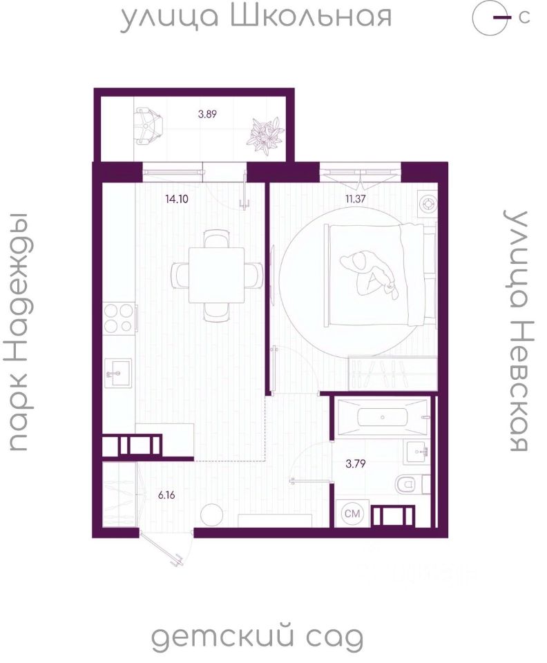 Продаётся 1- комнатная квартира площадью 36,59 кв.м. на 5 этаже 5-этажного дома в ЖК "Дубровка. Park". Номер квартиры 59.