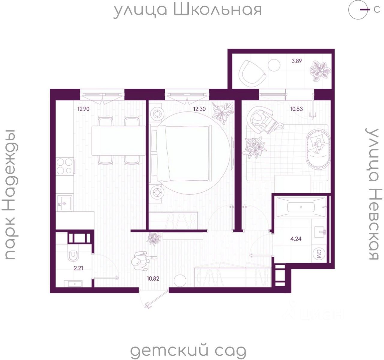 Продаётся 2- комнатная квартира площадью 54,17 кв.м. на 2 этаже 5-этажного дома в ЖК "Дубровка. Park". Номер квартиры 95.