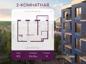 Продаётся 2- комнатная квартира площадью 53,53 кв.м. на 3 этаже 5-этажного дома в ЖК "Дубровка. Park". Номер квартиры 101.