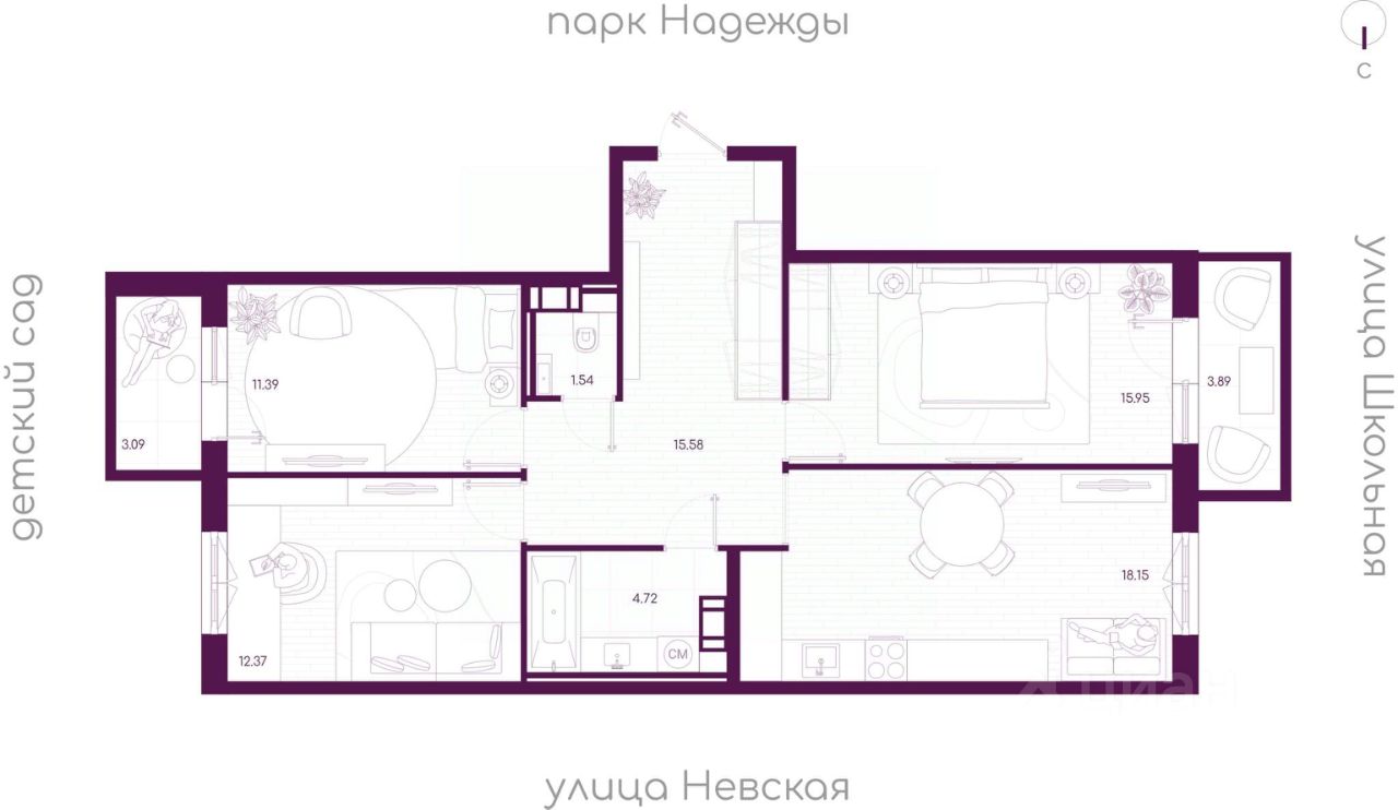 Продаётся 3- комнатная квартира площадью 81,80 кв.м. на 3 этаже 5-этажного дома в ЖК "Дубровка. Park". Номер квартиры 102.