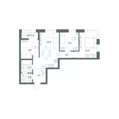 Продается квартира площадью 66.85 м²