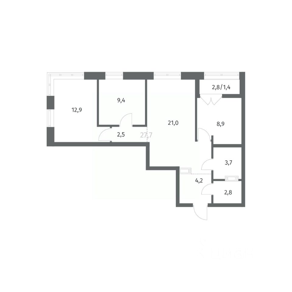 Продается квартира площадью 66.94 м²