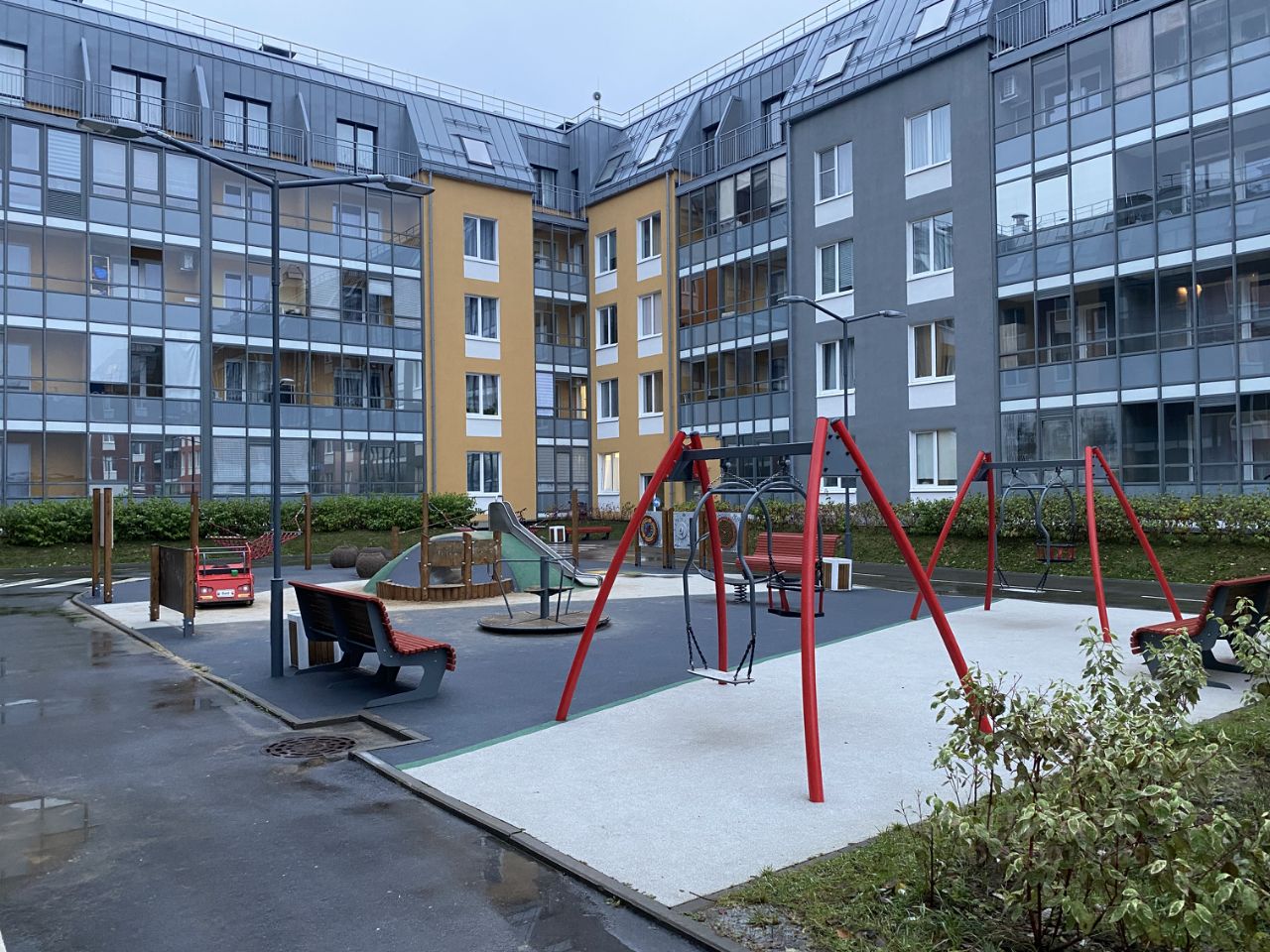 Комплекс закрыт для автотранспорта и посторонних во дворе, имеются просторные современные детские и спортивные площадки, подземная парковка для автомобилей, а также домофон и кодовая дверь.